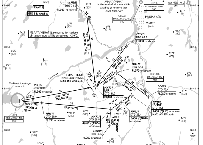 Для примера будем рассматривать схему посадки ILS в аэропорту Мурманска на полосу 31.