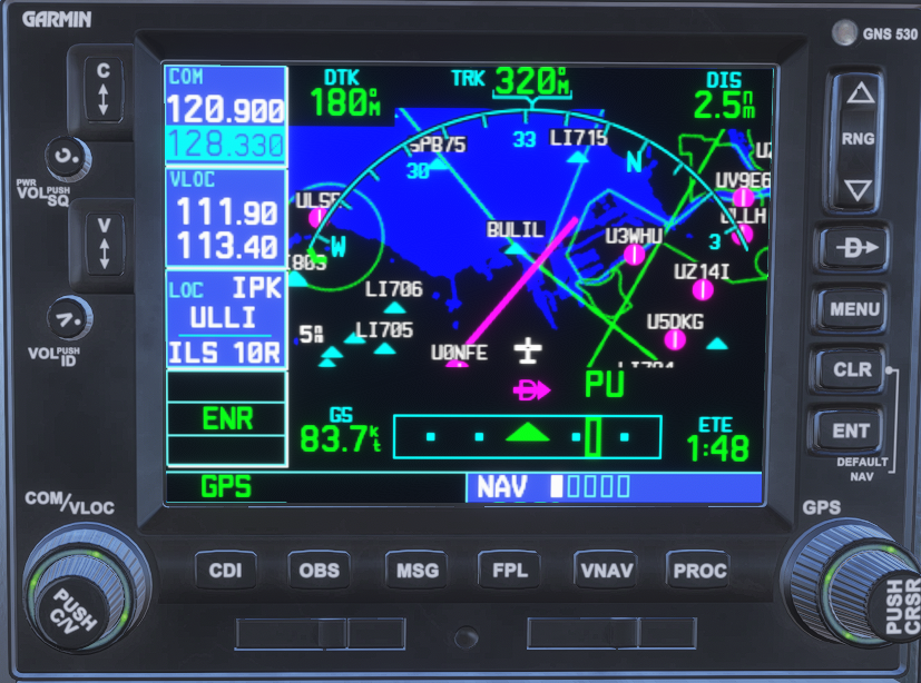 Чем хорош GNS530/430, так это тем, что мы можем летать по радиалу не только по VOR маякам, но и по любой навигационной точке, которая есть в базе данных навигационной системы.